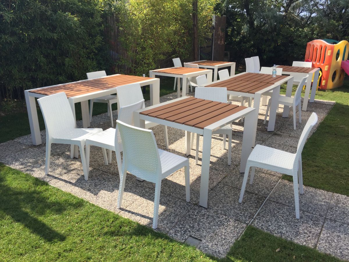 Выбор пал на отличные прочные стулья Virginiya Nebraska. Это практичные стулья, не боящиеся ни жары, ни холода, не выгорают и не деформируются. Всегда и в любую погоду будут выглядеть максимально призентабельными, радуя как гостей, так и владельцев заведения. Не требуют особого ухода и всегда прекрасно выглядят.